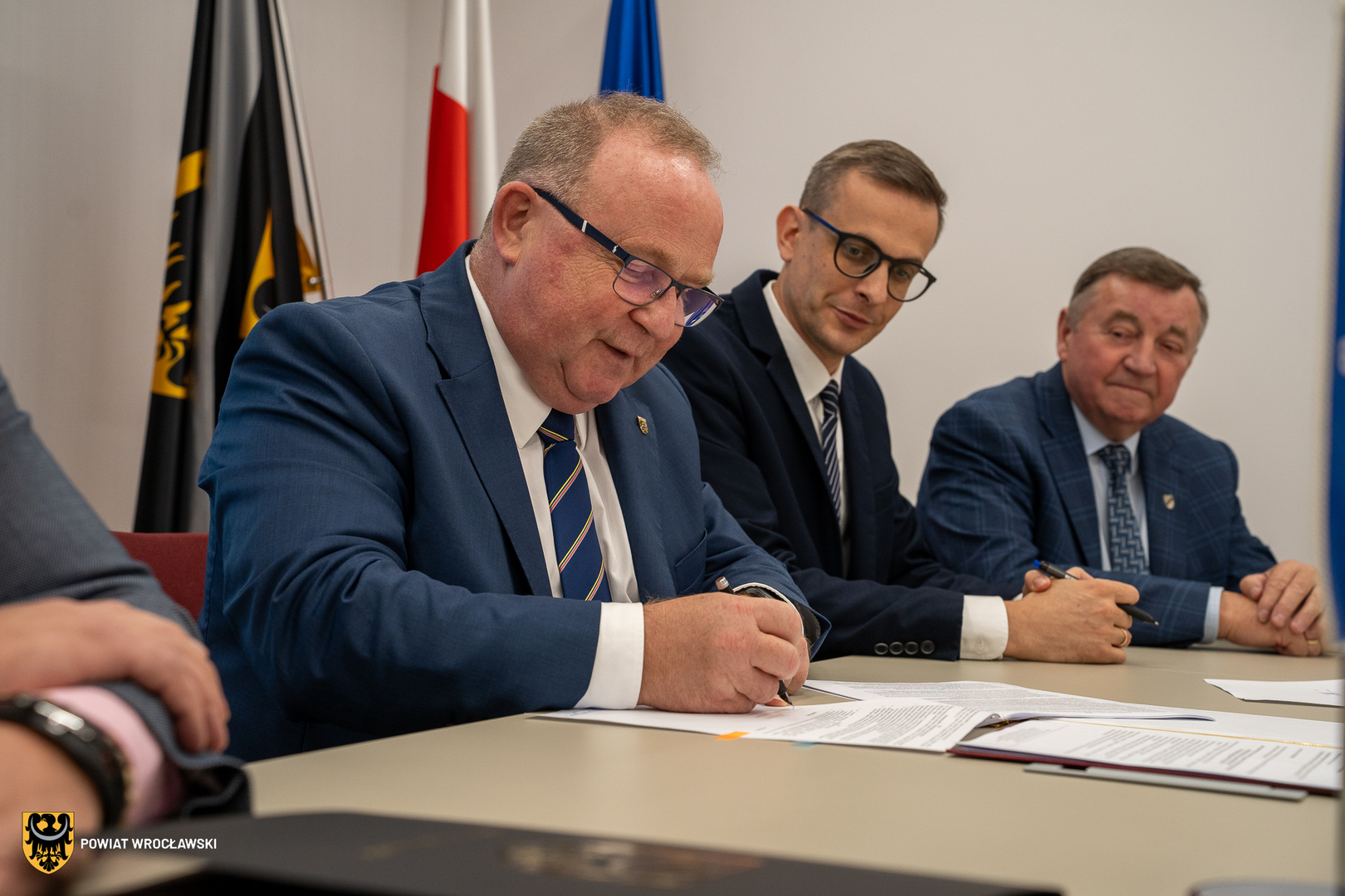 W dniu 17.10.2024 r. została podpisana umowa z firmą Eurovia Polska SA na realizację zadania pn."Budowa i rozbudowa drogi powiatowej na odc. od DK35 w m. Małuszów do ul. Koreańskiej w m. Biskupice Podgórne, prowadzącej do Podstrefy Wrocław-Kobierzyce TSSE EURO-PARK, w systemie zaprojektuj i wybuduj".