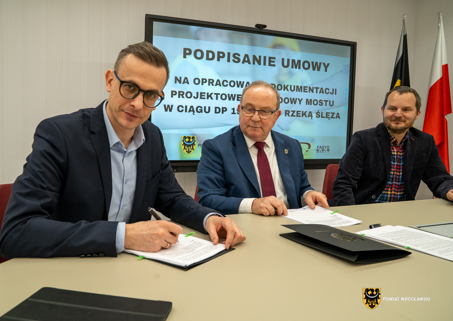 Dziś w Starostwie Powiatowym we Wrocławiu wykonano milowy krok w stronę poprawy bezpieczeństwa mieszkańców gminy Kobierzyce. Władze powiatu podpisały umowę na opracowanie dokumentacji projektowej dla nowego mostu nad rzeką Ślęza. To reakcja na zniszczenia, jakich dokonał żywioł we wrześniu 2024 roku.