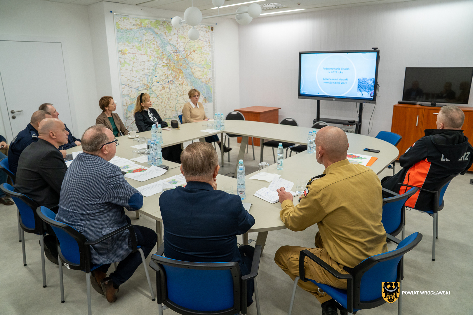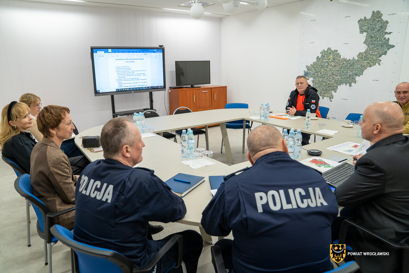Posiedzenie było okazją do kompleksowego podsumowania działań służb oraz koordynacji dalszych działań na rzecz bezpieczeństwa mieszkańców Powiatu Wrocławskiego.