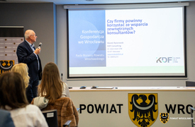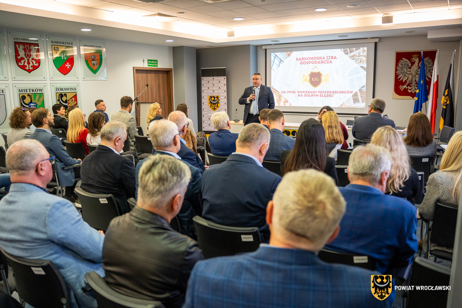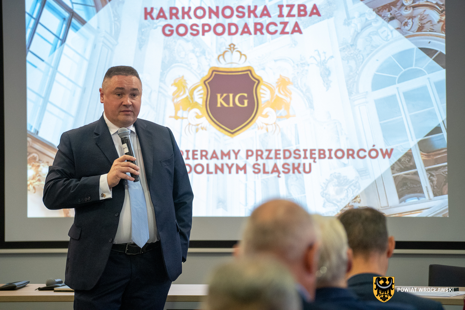 Konferencję otworzył Hieronim Kuryś – Członek Zarządu Powiatu Wrocławskiego i Paweł Bojarski, Prezes Zarządu Karkonoskiej Izby Gospodarczej.