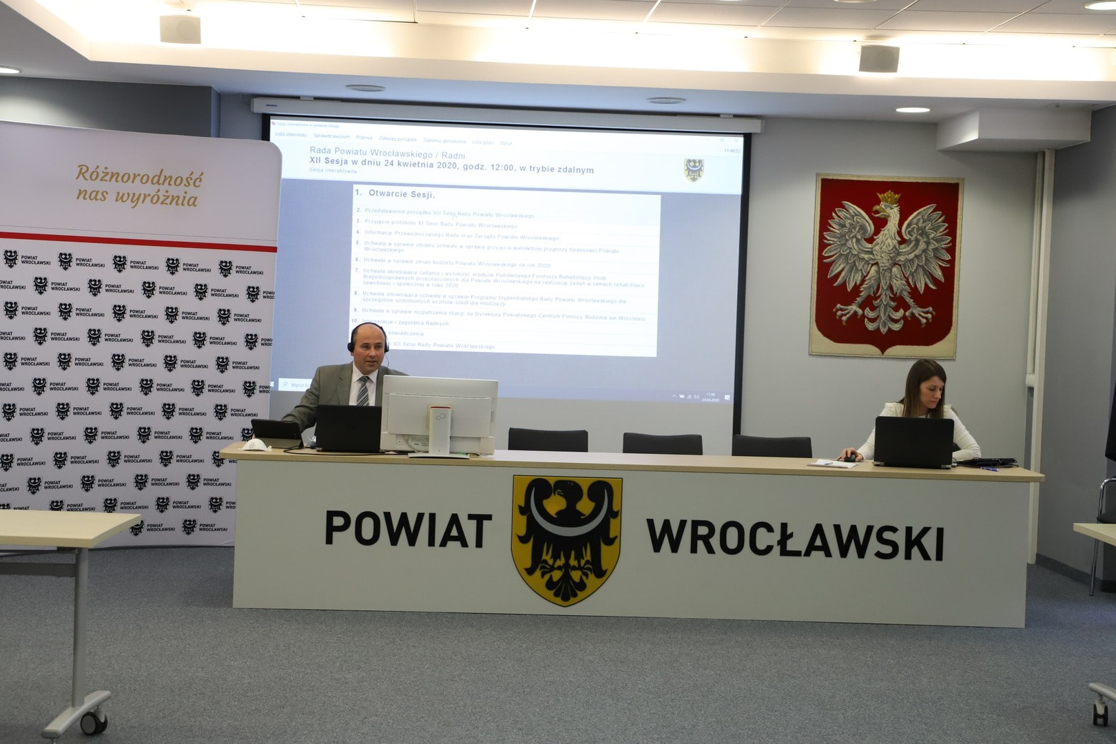 W dniu 24 kwietnia 2020 r. odbyła się XII Sesja Rady Powiatu Wrocławskiego. Wyjątkowo, z uwagi na aktualną sytuację związaną z pandemią koronawirusa COVID-19, obrady odbywały się w formie wideokonferencji z radnymi. Posiedzenie tradycyjnie w sali sesyjnej otworzył Przewodniczący Rady Powiatu Wrocławskiego Piotr Chmurzyński, który wyraził aprobatę, że pomimo trudnych okoliczności i wielu zachorowań w Polsce, wszyscy są obecni i zdrowi. Następnie przedstawił i omówił najważniejsze sprawy oraz przedstawił porządek obrad.